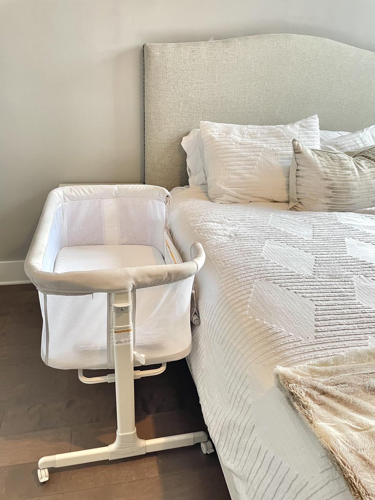 Adjustable-height bassinets with drop-down sides and breathable mesh provide close proximity for easy nighttime feeding and monitoring.