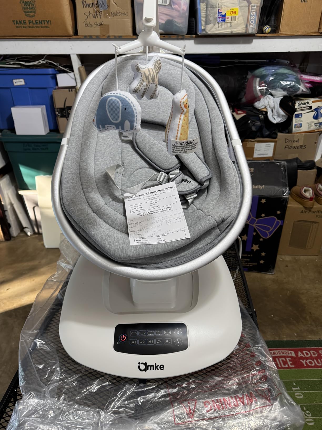 AMKE’s 4-in-1 Bassinet (32 x 18 x 36 in., 12 lbs) offers 5 rocking modes, timer, weighing mode, remote, and 12 songs. With breathable mesh and foldable design, it suits newborns up to 20 lbs. 1-year warranty.