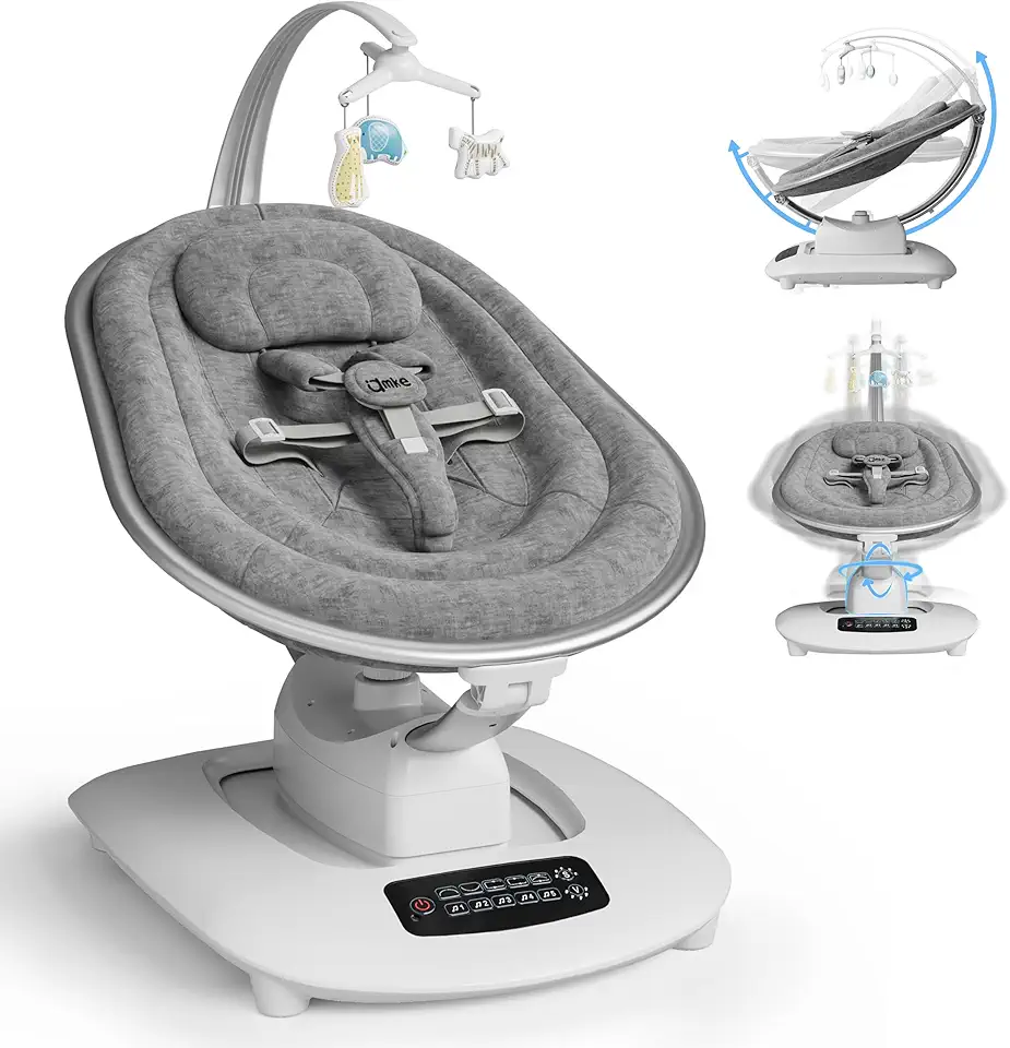 Luxury Electric Baby Swing for Infants, 45dB Quiet Dual Motor